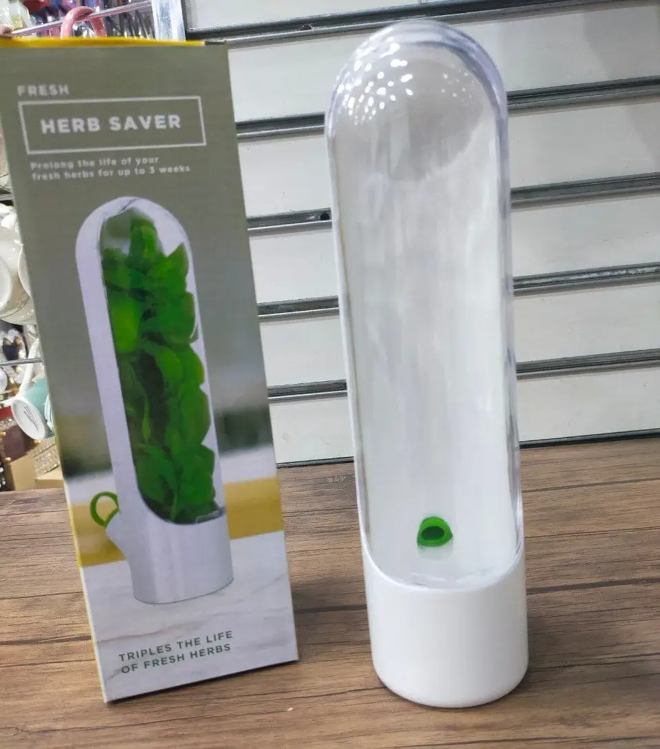 حافظة الأعشاب الذكية لحفظ البقدونس والشبت والكزبرة فريش لأيام أطول. تصميم محكم يحافظ على الرطوبة ويمنع الدبلان ويوفّر عليك فلوس.