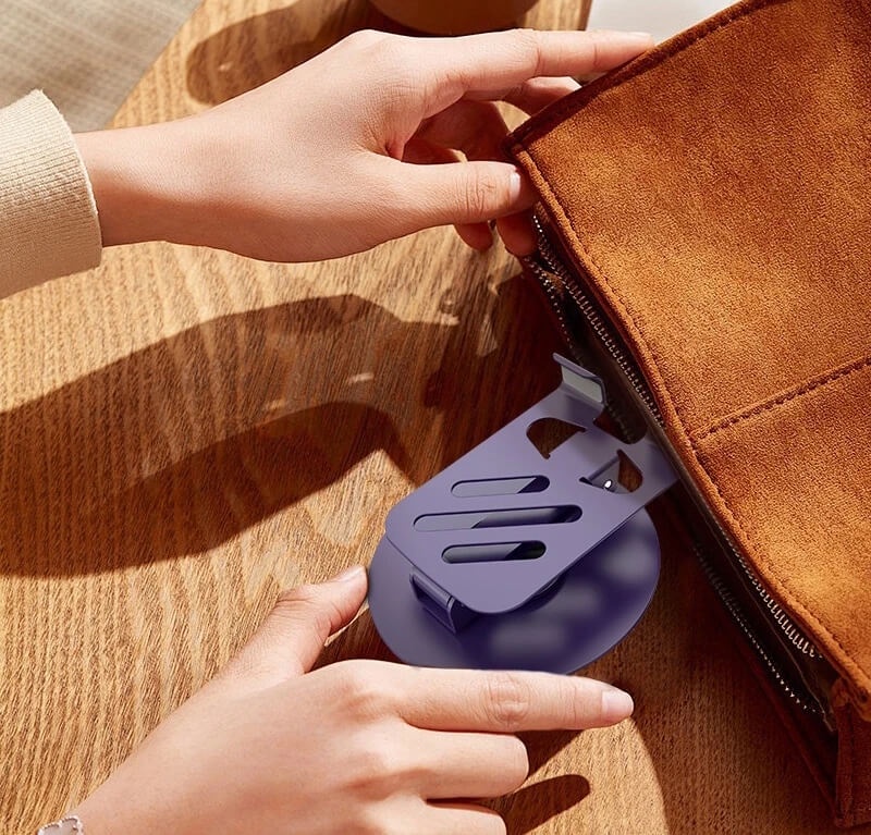 يمكن طي الحامل بشكل مدمج وسهل الحمل، مما يجعله مثاليًا للاستخدام أثناء التنقل أو السفر. يناسب بسهولة في حقيبة الكمبيوتر المحمول أو الحقيبة اليدوية.