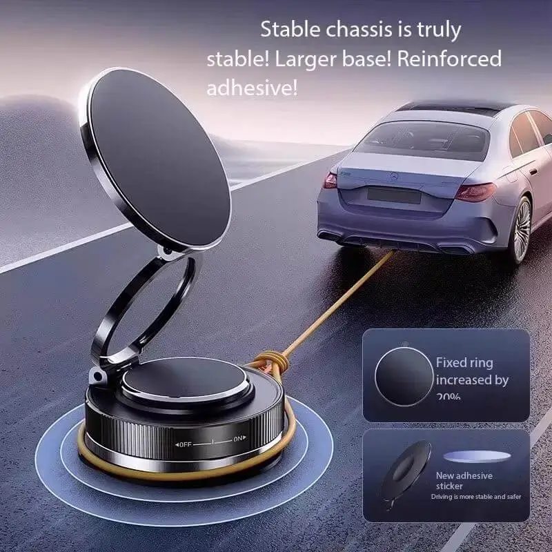 حامل موبايل شفط فاكيوم مغناطيسي (Vacuum Magnetic Phone Holder) ثابت حتى مع المطبات، دوران 360°، سهل التركيب، مثالي للسيارة والمكتب.